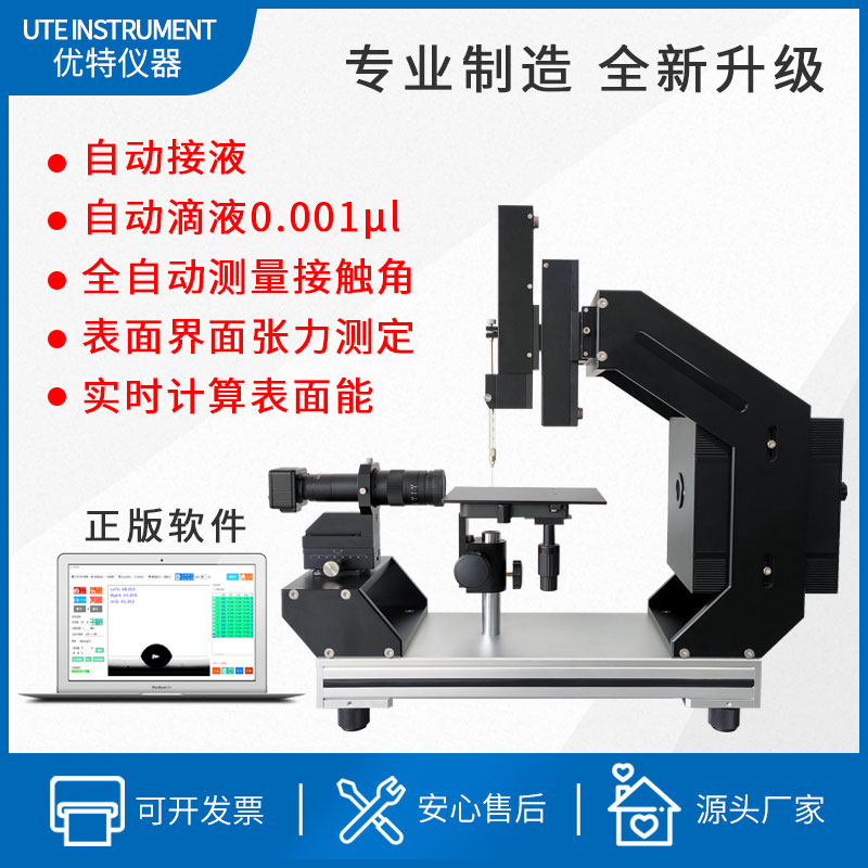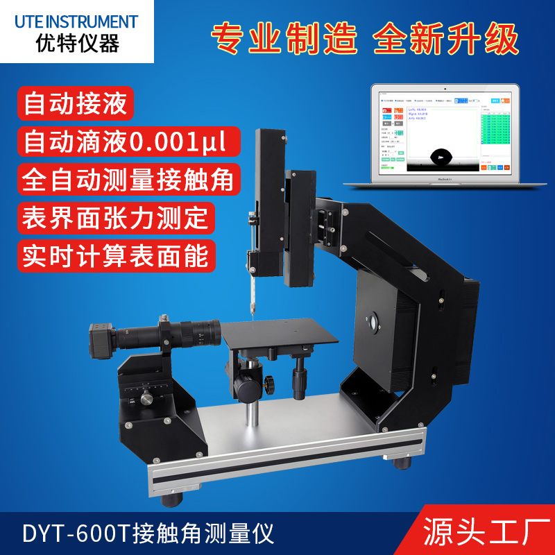 DYT-600T接觸角測量儀具備自動滴液和自動接液功能,可實現(xiàn)對接觸角的全自動測量。