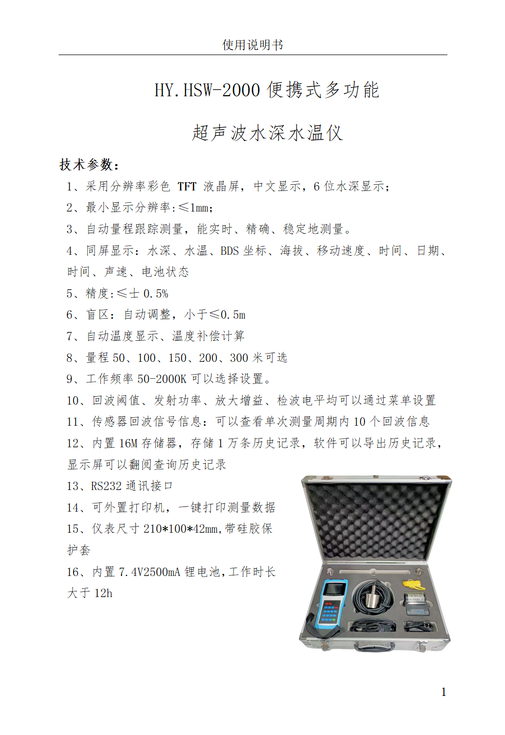 HY.HSW-2000便攜式多功能超聲波水深水溫儀,,測深測溫儀測深測溫儀