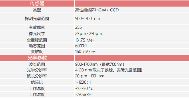 探測(cè)器:256 像素 InGaAs 線陣(25×250 μm 像素,一體化安裝與散熱設(shè)計(jì))